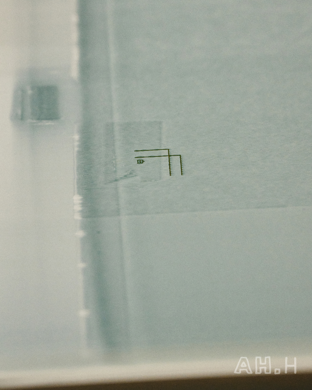ランチの後は白の印刷。2色目の印刷には、トンボの位置がズレていないかを確認するのが大事。印刷したあとに乾燥機で乾かし、その後、刷っていくのだが、その段階でどうしても紙の縮みが起こる。そうするとどうしてもトンボの位置がズレていく。そうなると文字の位置もズレてきてしまう可能性がある。そうならないように、代表とアシスタントさんが機械を微調整し、ズレてないか確認しながら進めていく。ちょっとはズレてしまうのだが、ある程度は許容範囲。ゴーして印刷を進めていった。