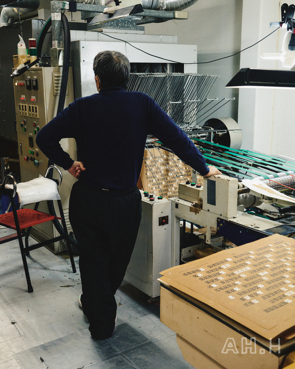 印刷所の代表の方が、アシスタントの方と2人で印刷機を調整しながら印刷し、奥の方でお父さんがサポートしての3人体制で作業は進んでいった。数週間前に紙とインクの乗りのテストをしてくれていて、この日はそれを元に「数枚、再度テスト印刷をして確認してから本番の印刷をする」ということを3回繰り返して仕上げていった。
