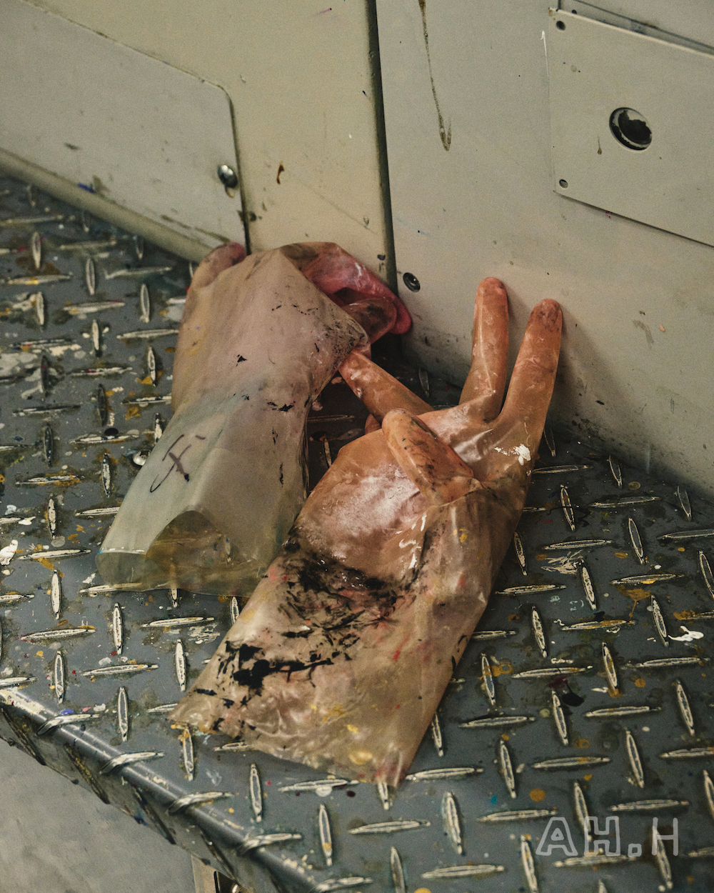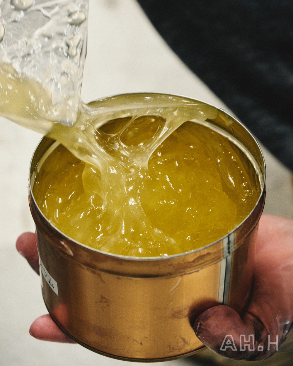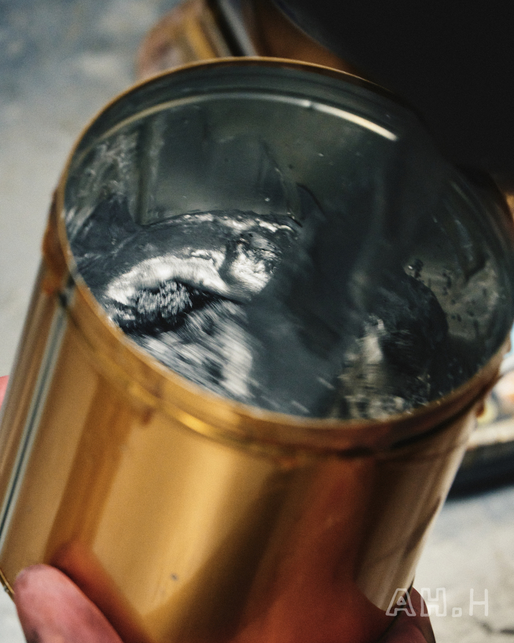 最後はシルバー。2種類のインクを試した。数週間前のテスト印刷のときに使ったものは、すぐ乾いていいのだが、「綿飴みたいなるからダルいな思ったんですよ」と代表。途中でインクが絡まってきて紙に張り付いてしまうのだそう。そのため、乾くのに時間がかかる、もう一つの方を試したのだが、そちらは乾くのに時間がかかりすぎるうえに輝きが若干、鈍い。印刷機を回してみて、問題なければ前者の方でいこうという話になった。