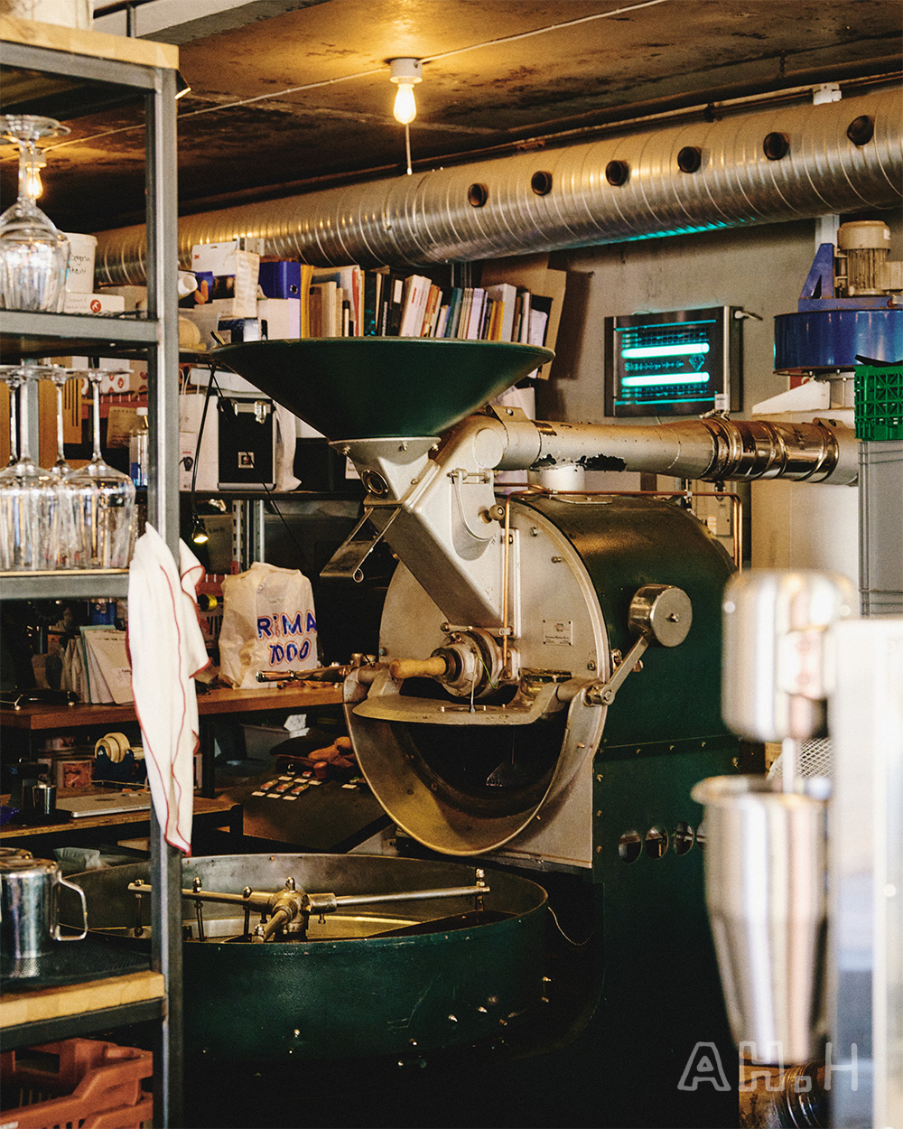 「FUGLEN」でコーヒー豆を調達して焙煎しているのは、ノルウェーのオスロと、日本の登戸の2箇所。これだけでも「FUGLEN」にとっての日本という国の重要性がわかるというものだ。ここで焙煎した豆は、オスロで使うだけではなく、韓国・ソウルのお店にも送られているそう。長い時間をかけて異国に届けられるわけで、生豆を保管する倉庫は空調と湿度が細やかに管理されている。
