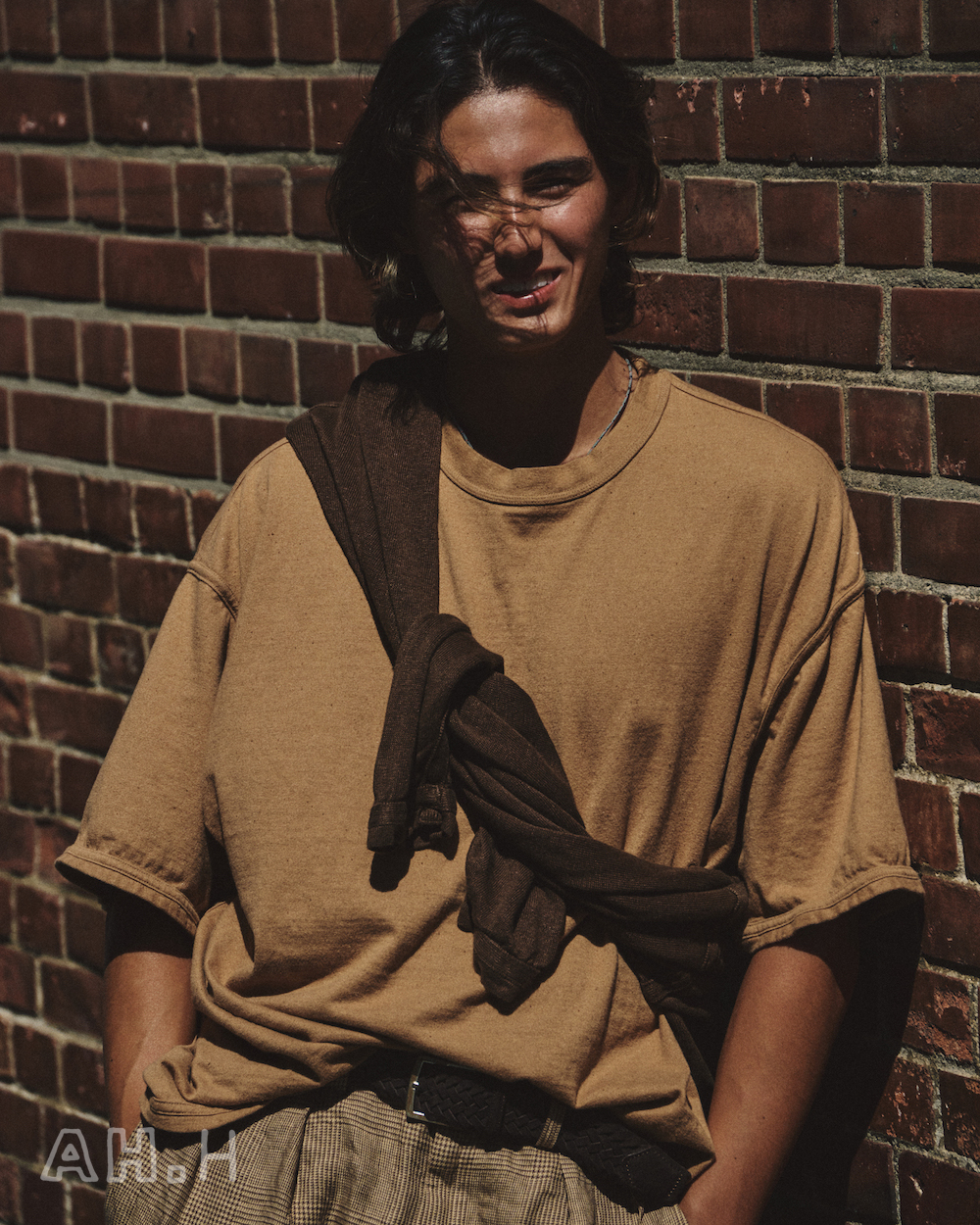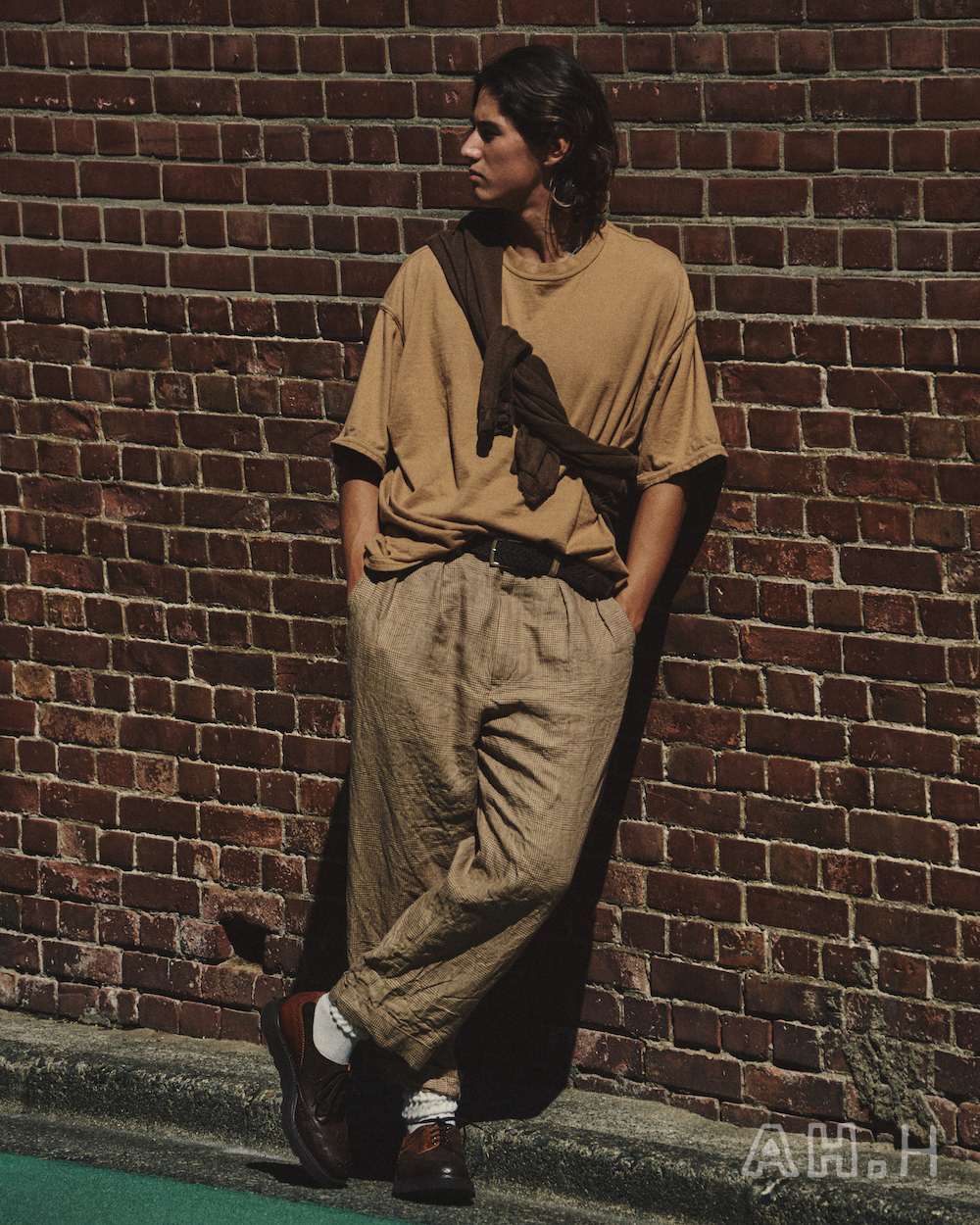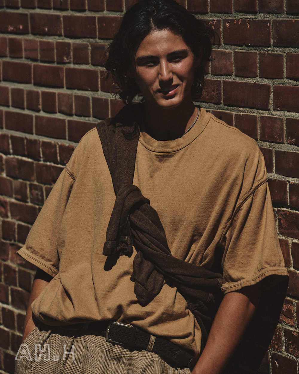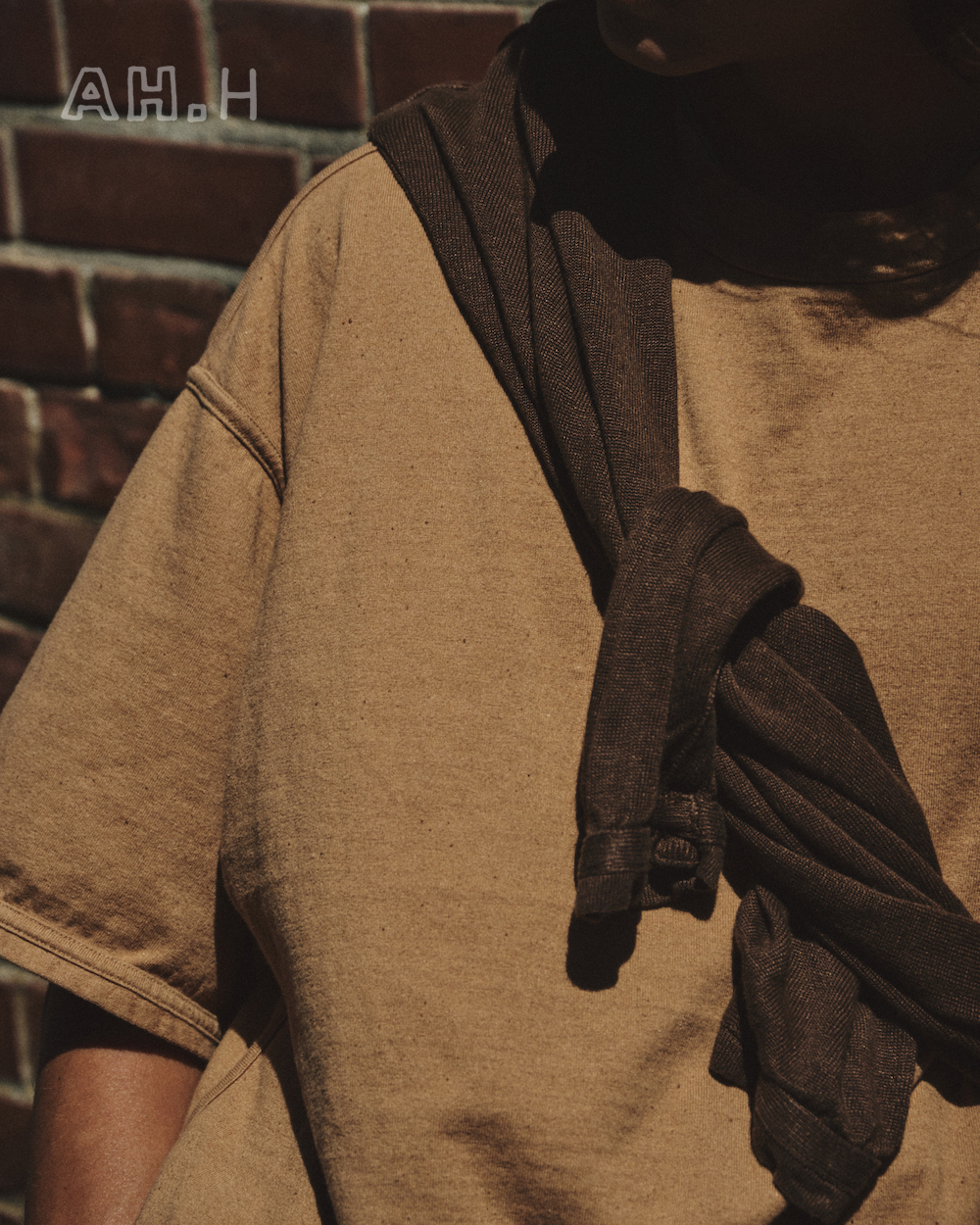 天然の優しい茶色が、まだ残る、焼けた肌によく馴染む。これから訪れる、紅葉の季節にもきっと美しく映える。街で目立つよりも、季節ごとに変わる街並みに溶け込み、その季節らしい服装でいたい。肌寒くなって、秋めいては来たけれど、まだ暑いときもあるから半袖Tシャツは欠かせない。それに、どうせまた来年も着るのだから、Tシャツはどんな季節にも買ってもいいのだ。