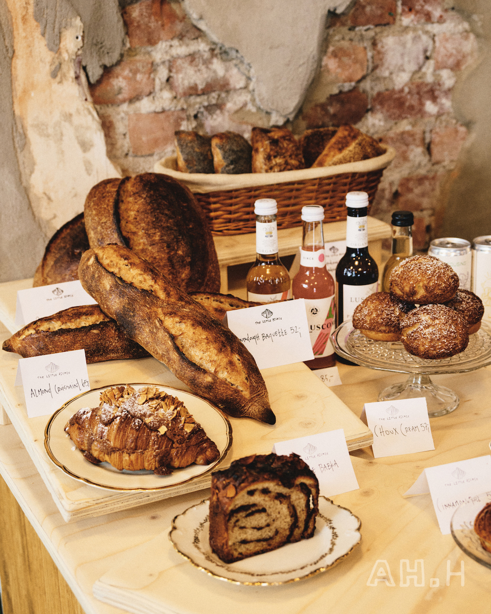 「Little Pickle」は朝から昼過ぎにかけてはベーカリー、そして夜はレストランとして営業しているお店だ。お店の売りはなんといっても入り口すぐのところにあるパンの数々で、サワードウブレッドに、バゲット、クロワッサン、シナモンロールにシュークリームと種類も豊富だ。
