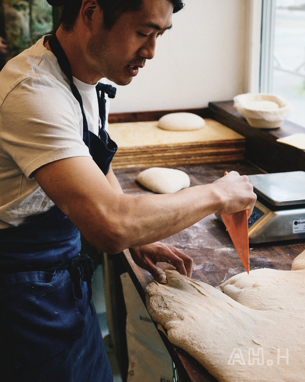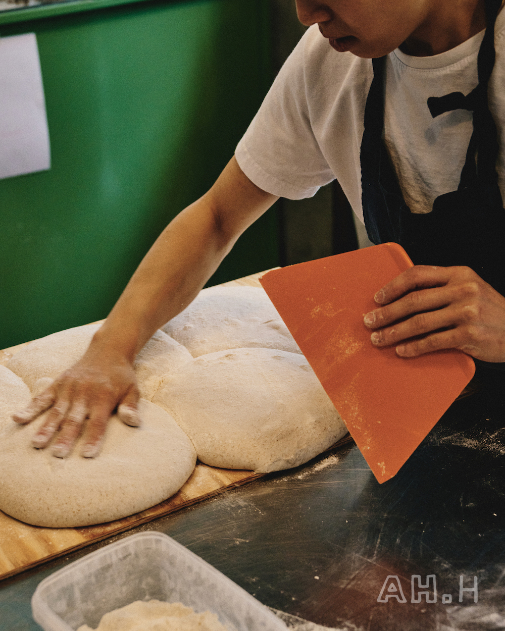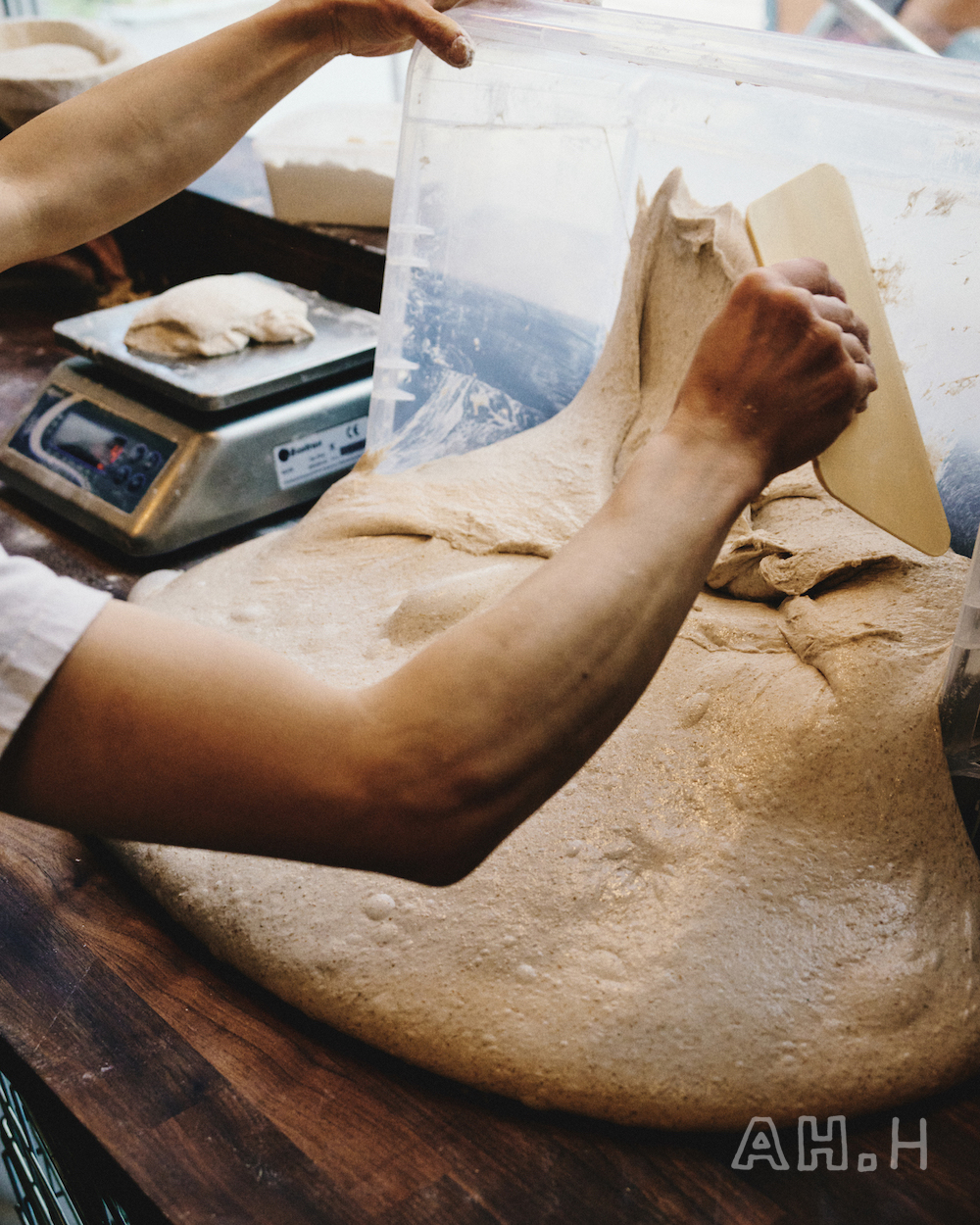 サワードウブレッド作りには、「発酵」「シェイピング(成形)」「寝かす」「冷やす」「焼く」という工程があり、今回は「シェイピング」の様子を覗かせてもらった。