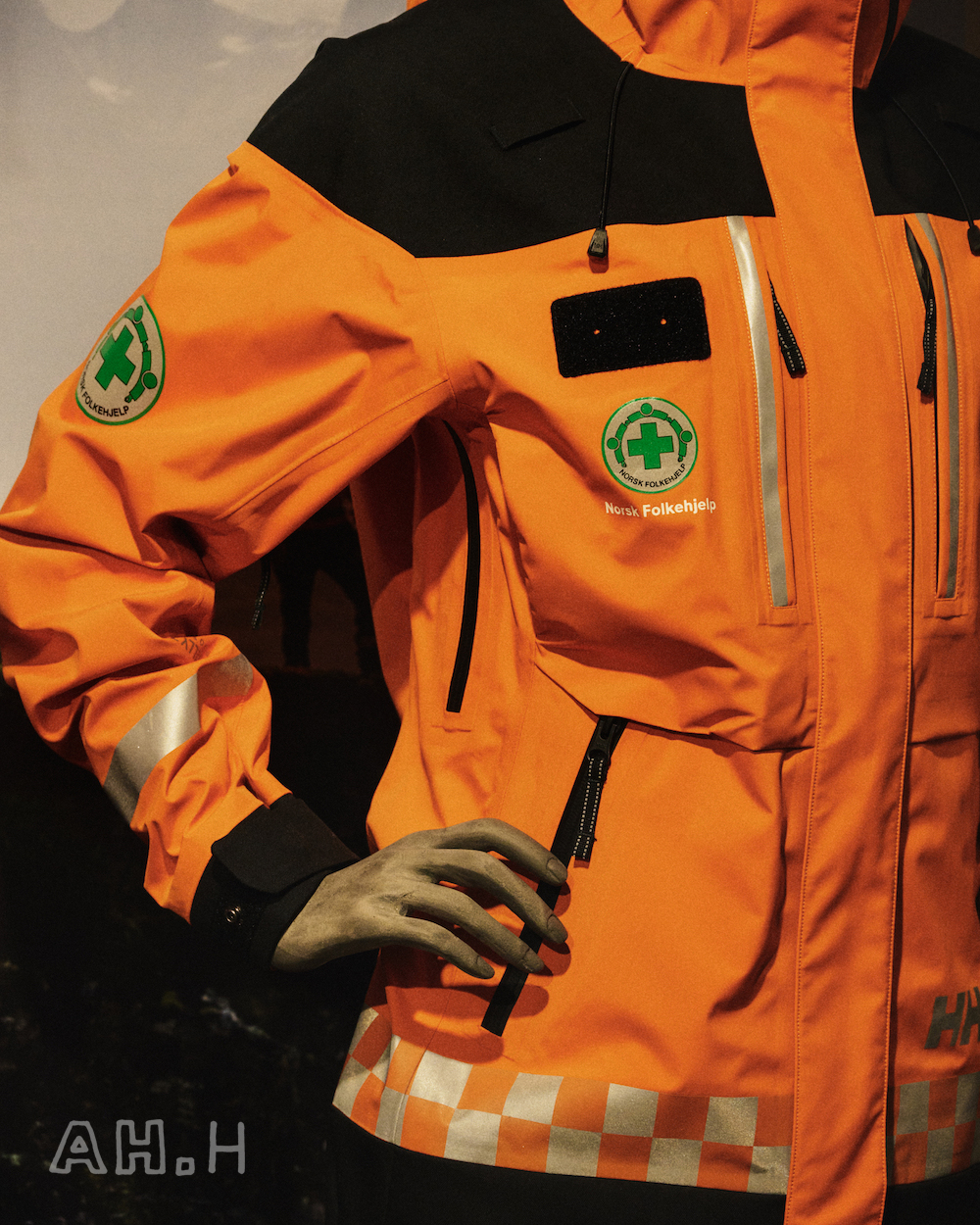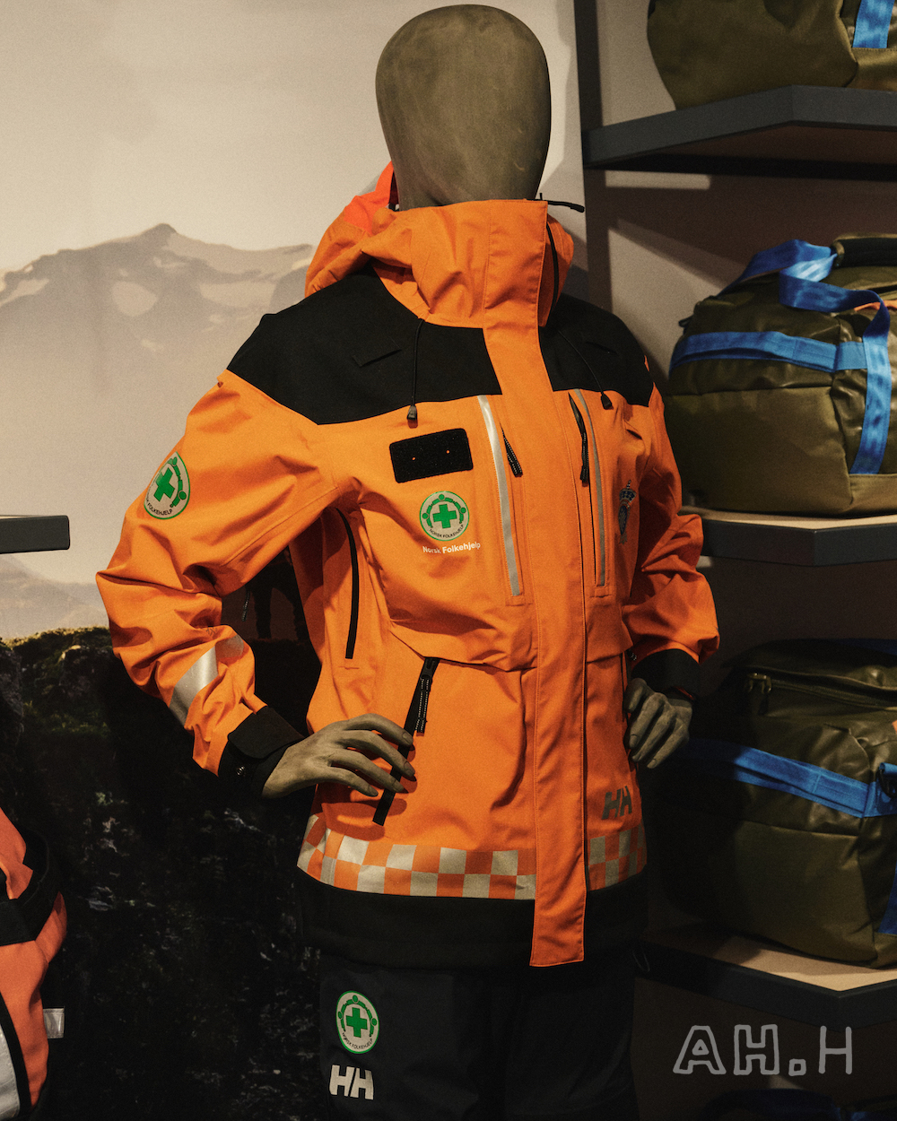 救難、応急処置、災害支援などに携わる組織、「Norsk Folkehjelp(ノルウェー人民援助)」とパートナーシップを結び開発、ユニフォームに採用されているジャケット。スポンサーシップではなくパートナーシップであるということを力説していたのが印象的だった。