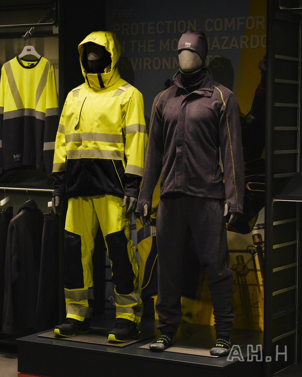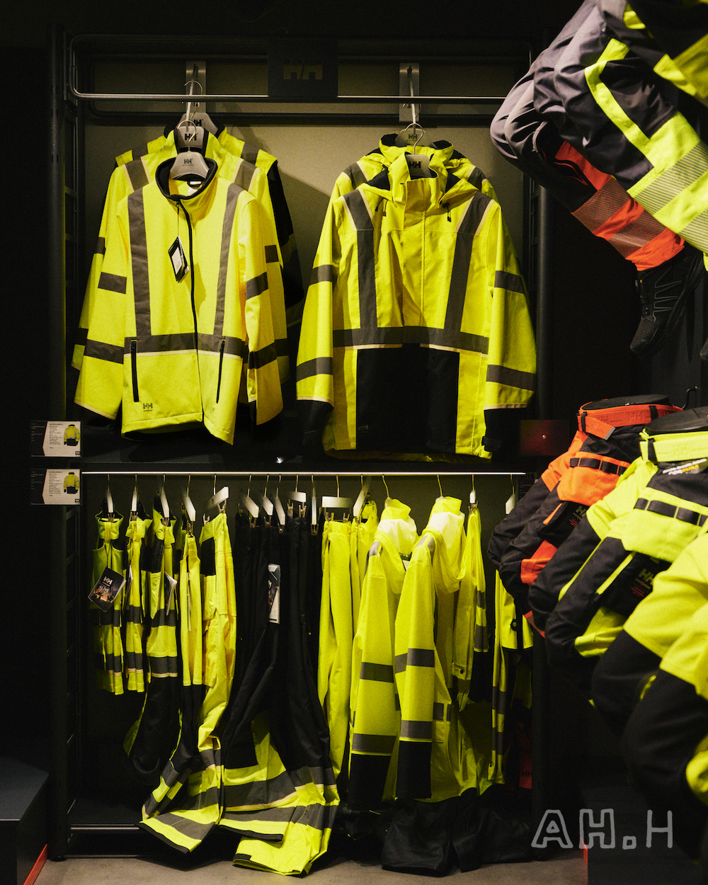 その技術力を活かした商品開発で、多くの人の生活を支えているラインのひとつに〈HELLY HANSEN work wear〉がある。日々タフな環境で働くプロフェッショナルなワーカーに向けた、最先端テクノロジーを搭載した高機能ウェア群だ。船上作業員や、漁師、港湾作業員、建設・土木系の作業員、救助隊などの公共サービスに従事するひとたち、そして林業、農業のプロも採用しているという。