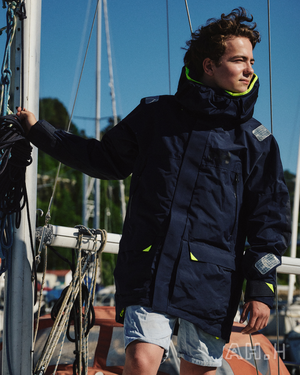 プロのレーサーの意見を反映し、沖合および沿岸でのセーリング用に作られた一着。防水性・透湿性・防風性を持つ「HELLY TECH® Performance」テクノロジーを取り入れており、本国モデルのなかでも、トップレンジのハイスペックモデルだ。生地の外側には頑強なコーデュラ素材、内側には速乾性のメッシュ裏地が。使用されているナイロン及びポリエステルには、海洋廃棄物リサイクル素材を採用している。