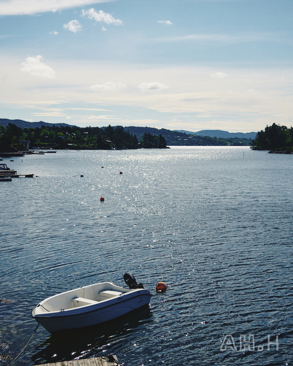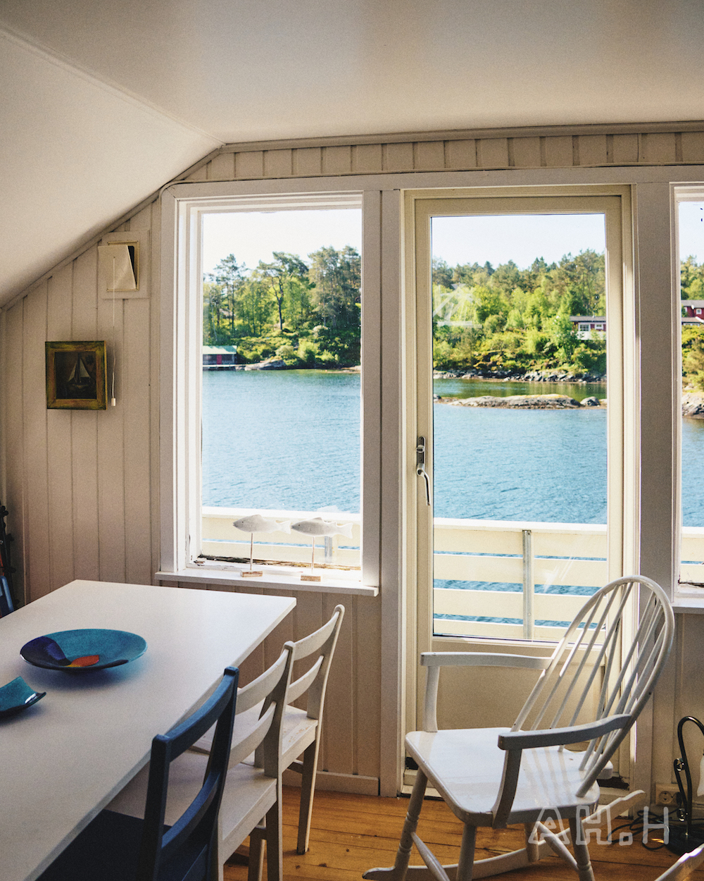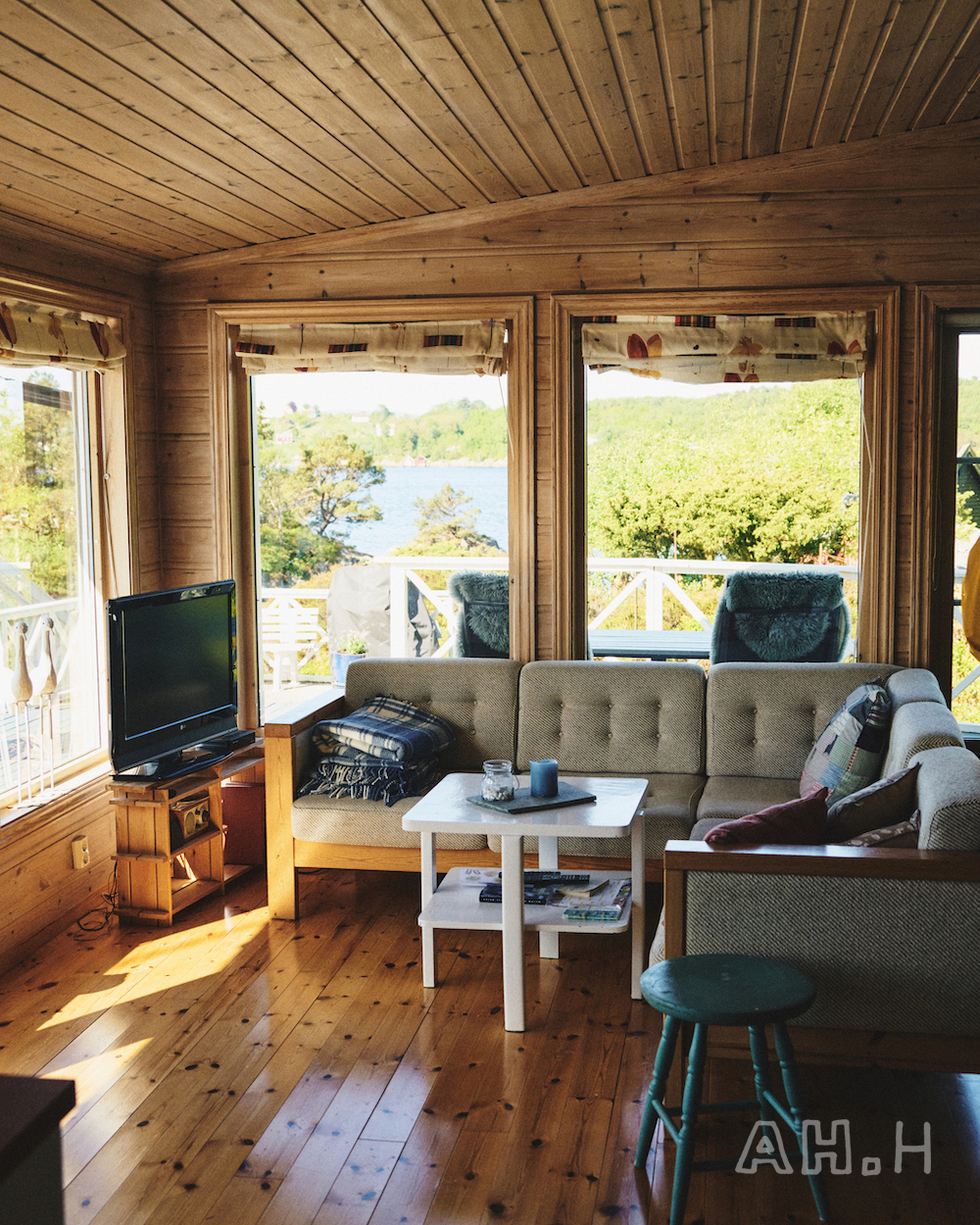 ノルウェーといえばの、美しいフィヨルドをモーターボートで走ること20分。〈Norwegian Rain〉 のベルゲンショップのマネージャー、エリンさんの父母が購入したというヒュッテに到着。