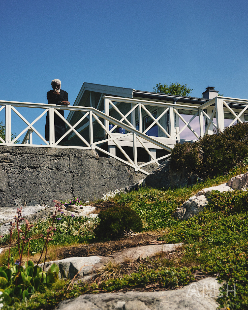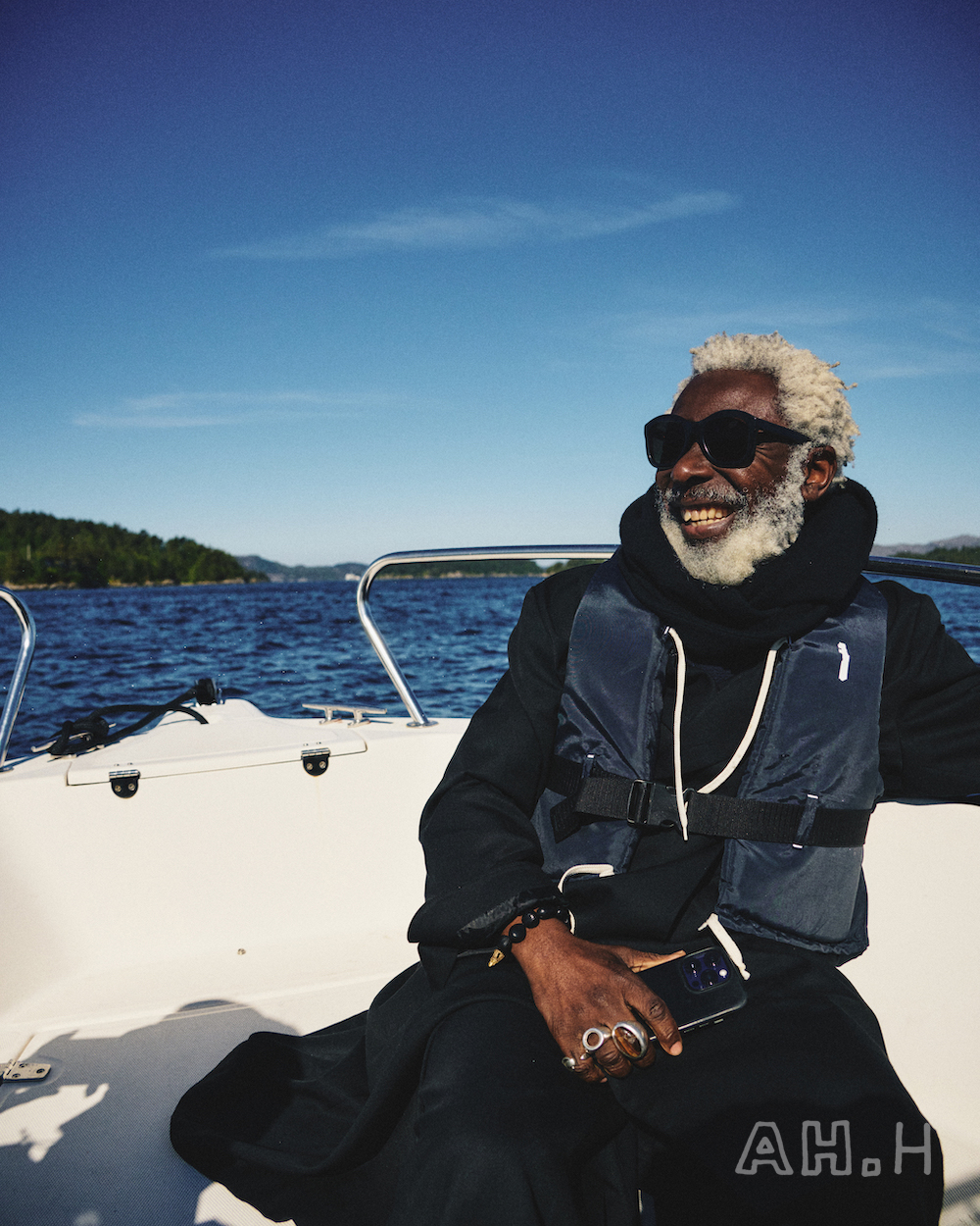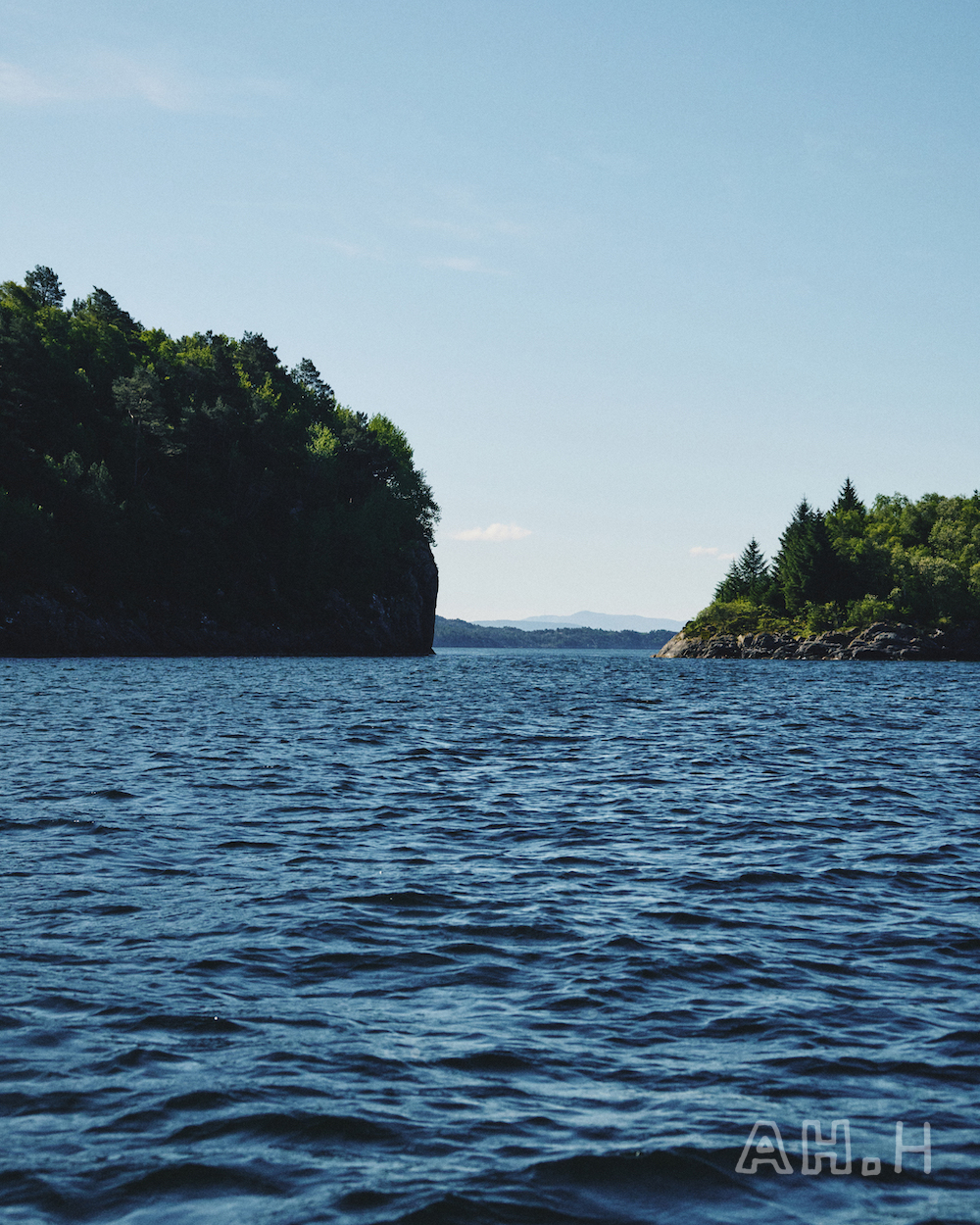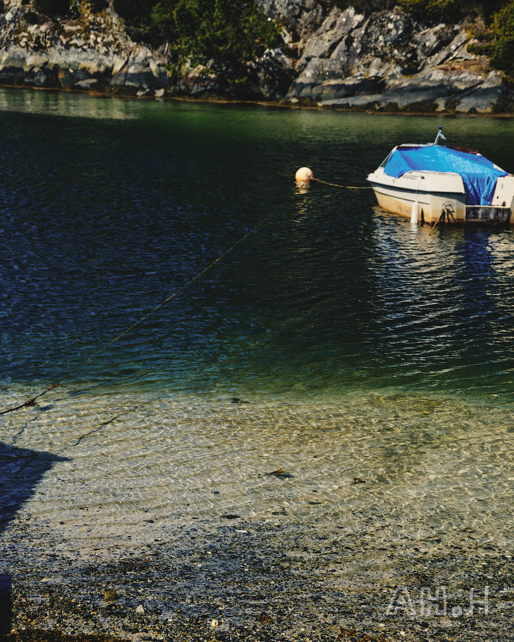 ノルウェーといえばの、美しいフィヨルドをモーターボートで走ること20分。〈Norwegian Rain〉 のベルゲンショップのマネージャー、エリンさんの父母が購入したというヒュッテに到着。