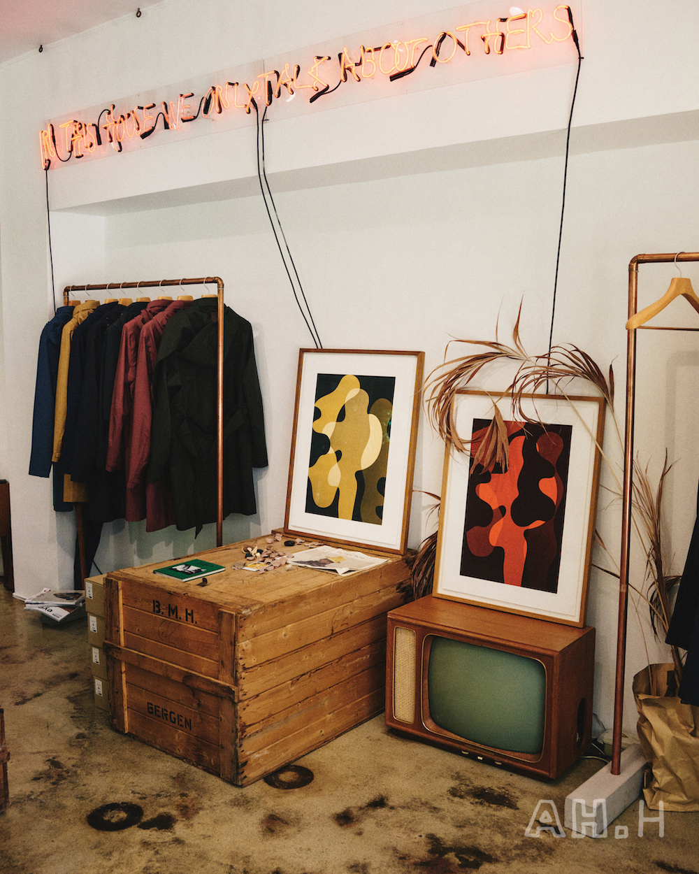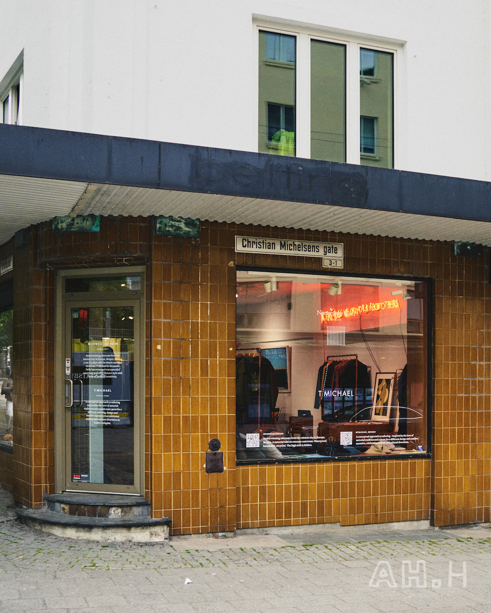 ベルゲンの中心部にあるショップには、ティーマイケルさんのクリエイションの全てが詰まっている。〈Norwegian Rain〉のレインウェアは従来のレインコートは他とは一線を画し、立体的なのが特徴。プロダクトには常にモダンで上品なムードが宿り、スーツの上に羽織っても、なんらその雰囲気を損なうことはない。ティーマイケルさんらしい服に仕上がっている。