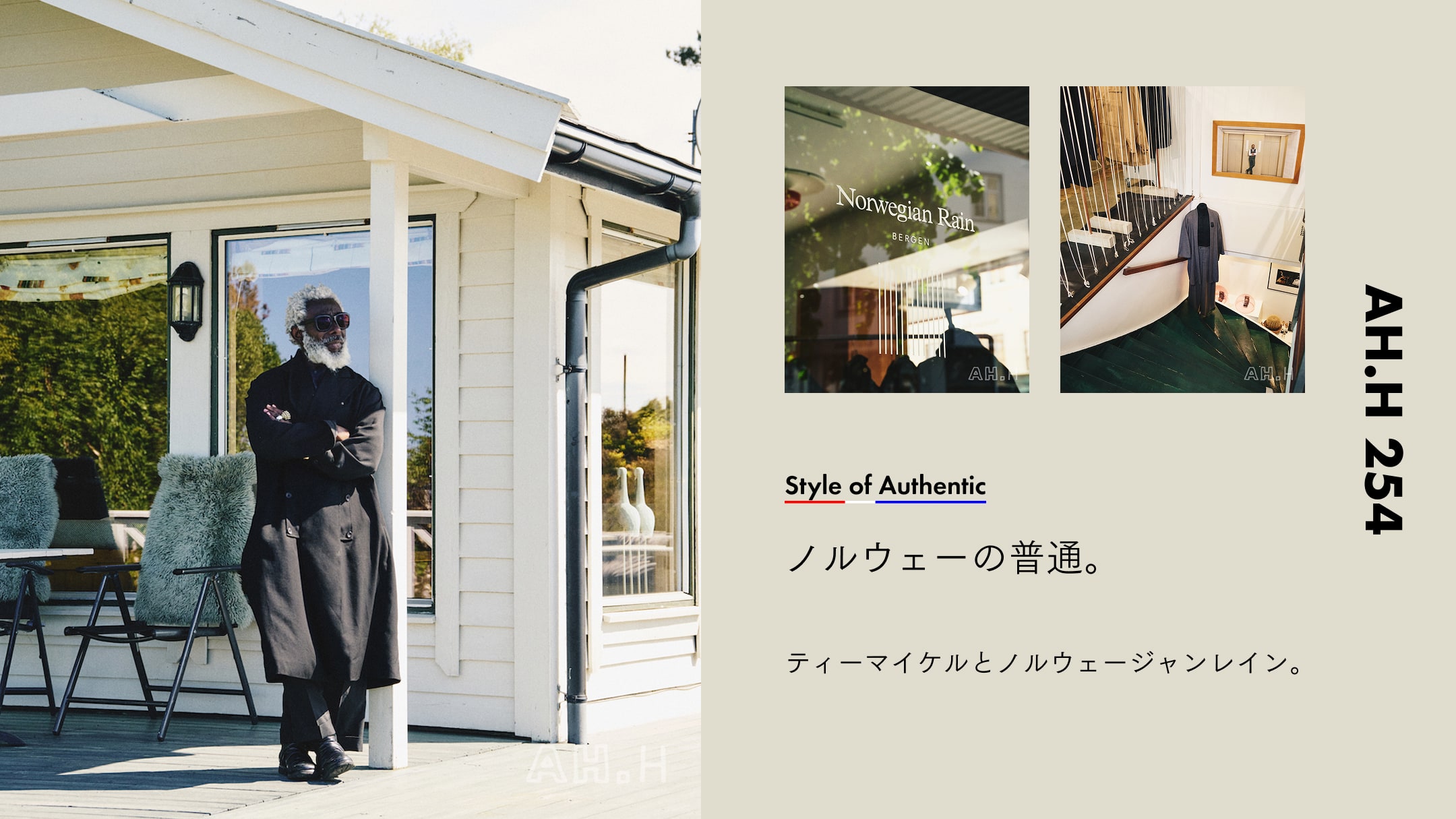 「元々ここベルゲンでテーラリングを主体としたブランド、〈T-MICHAEL〉をやっていたんだけど、クリエイティブディレクターのアレックスとともに、今までにないレインウェア〈Norwegian Rain〉を始めたんだ。デザインは全部僕が担当しているよ。2009年の話だね。ベルゲンは山に囲まれた街で、3日に1度は雨が降る雨の町だからそもそもレインウェアのニーズは高いんだけど、それまではいわゆる一般的なレインコートしかなかったから、〈Norwegian Rain〉ではテーラリングの要素を掛け合わせた機能的でコンテンポラリー、新しいレインウェアを作っているよ。今日はこんなに晴れているけどね(笑)。」