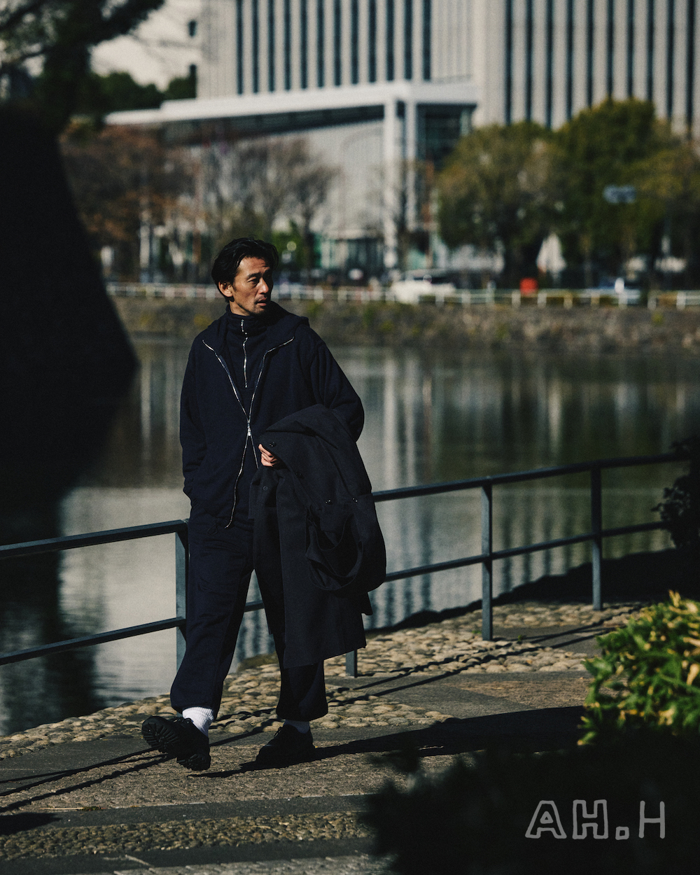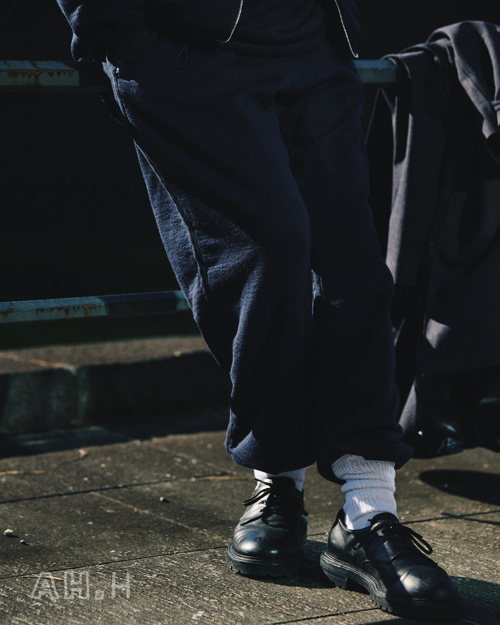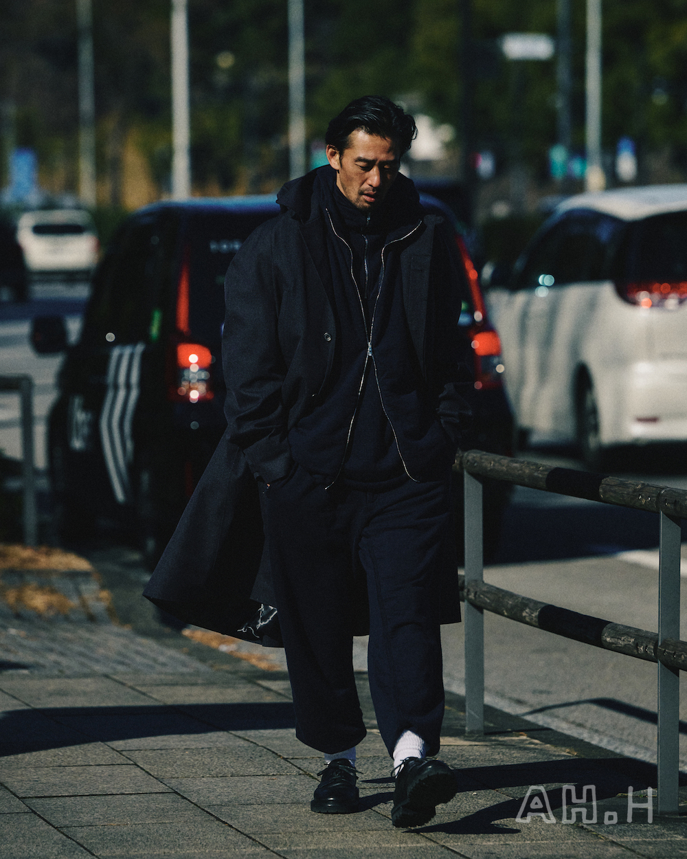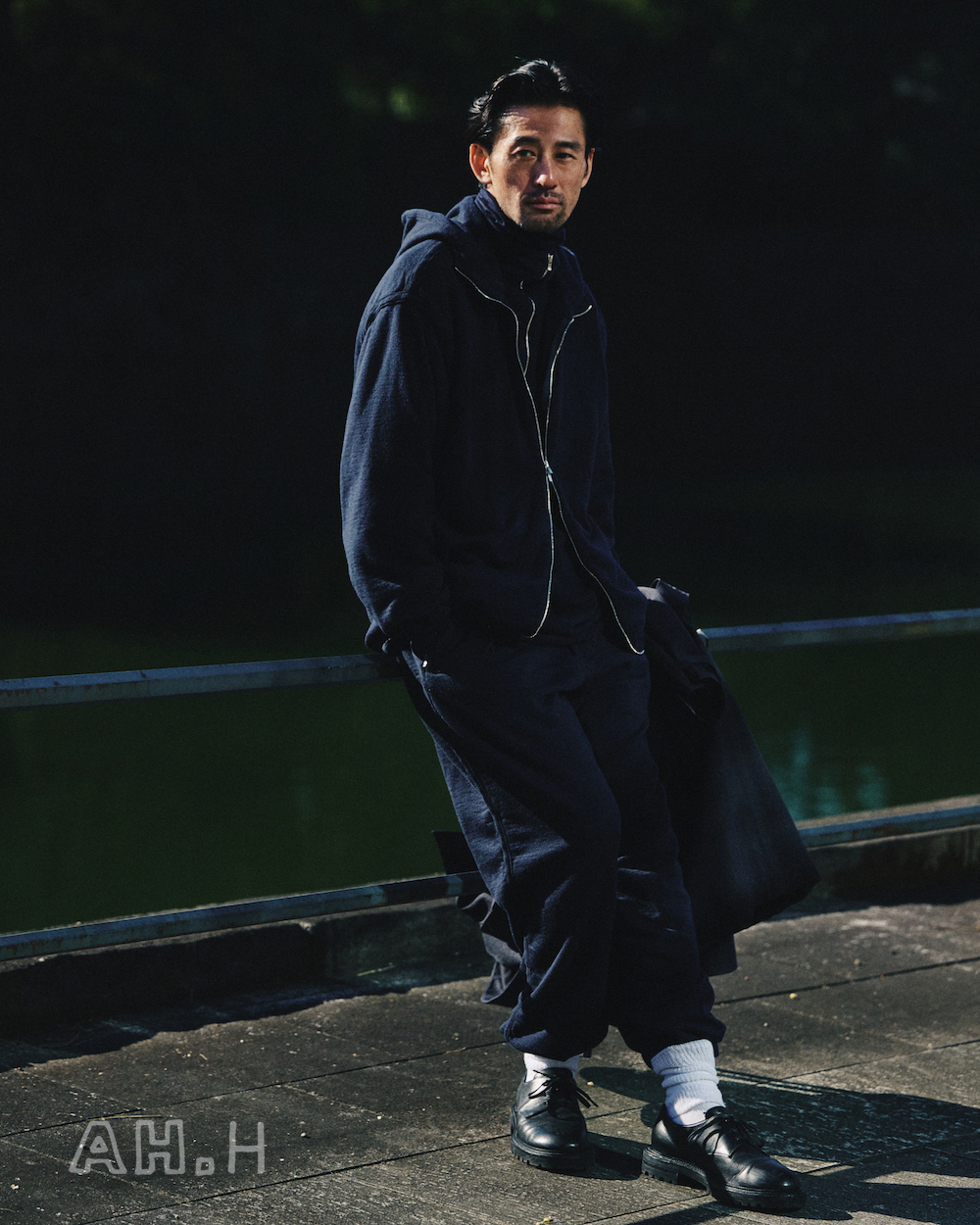 合わせているのは〈CAHLUMN〉のウォッシャブルメリノウールスウェット。ジップアップスウェットフーディ、スタンドカラーのスウェットシャツ、スウェットパンツ。これがとにかく楽すぎて、最近はこればかり。NYにもこれで行って、一週間過ごした。機内でも快適だし、街中でも程よい暖かさをキープする。昼夜で寒暖差のある今の時期に、ウォッシャブルメリノウールはしっかり機能してくれる。汗をかきすぎないスポーツをするときにもちょうど良くて、僕はピラティスにこれで通っている。