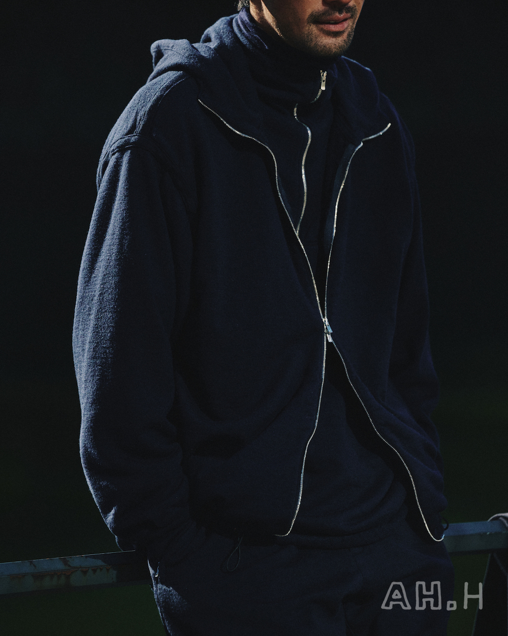 〈CAHLUMN〉Washable Merino wool Zip Hoodie ¥69,300、Washable Merino wool Half-zip Sweatshirt ¥55,000、 Washable Merino wool Sweat Pant ¥55,000(CAHLUMN STORE)